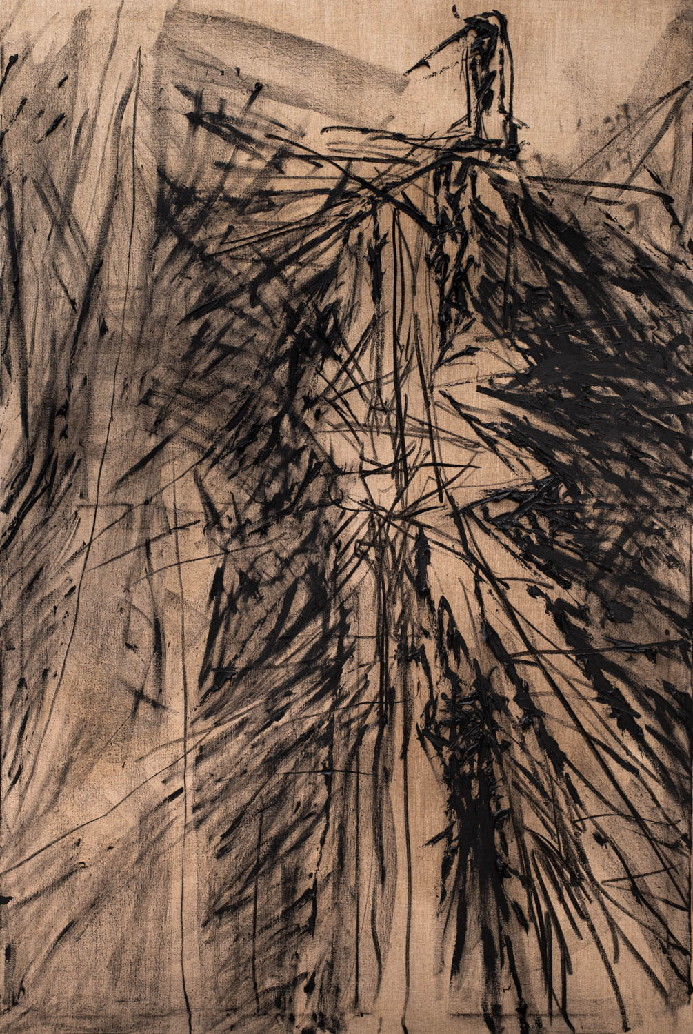 Obraz abstrakcyjny, ekspresyjny, czarno-brązowy