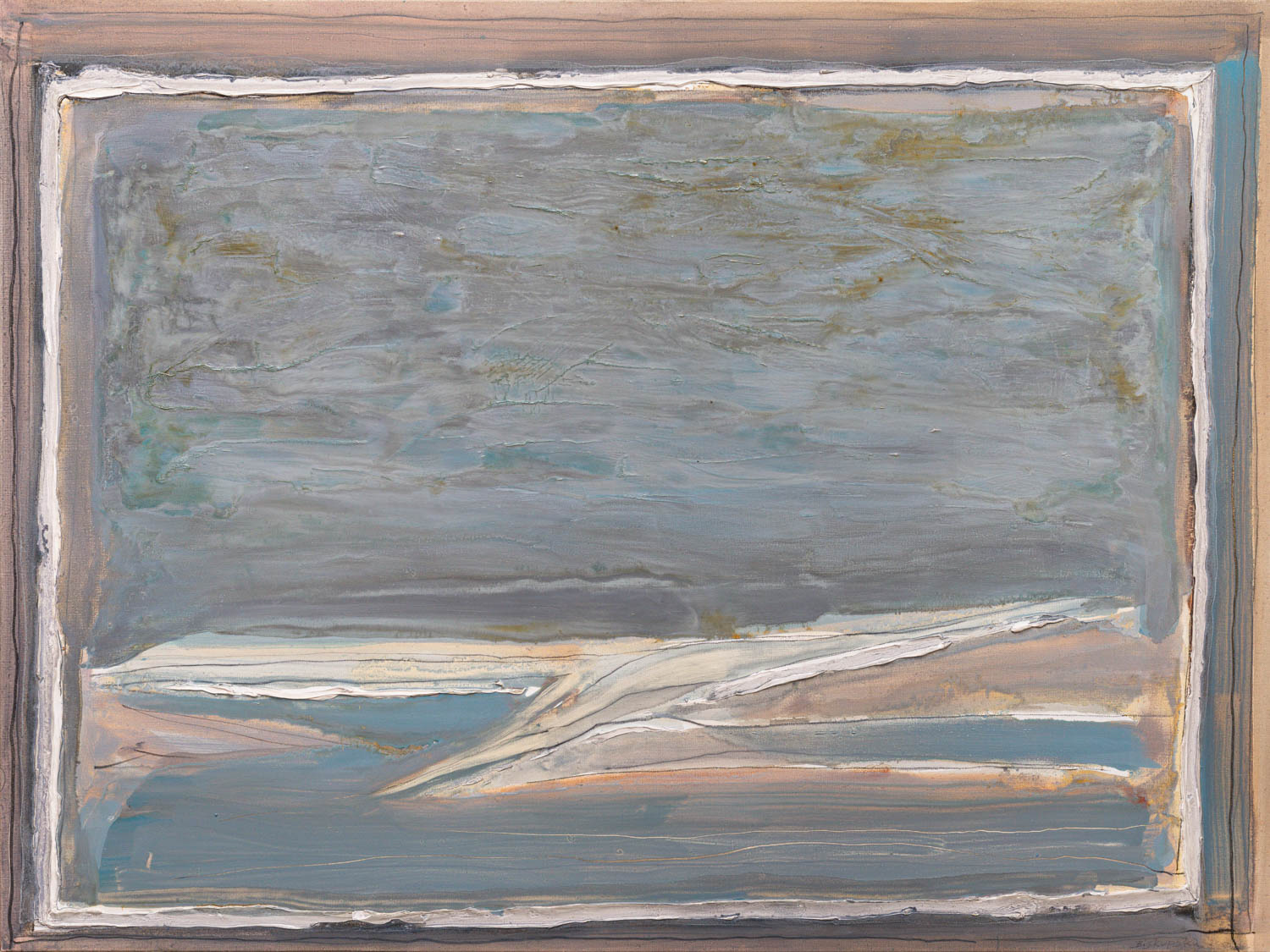 Obraz abstrakcyjny, szaro-niebieski z białym prosokątemi formą wewnątrz