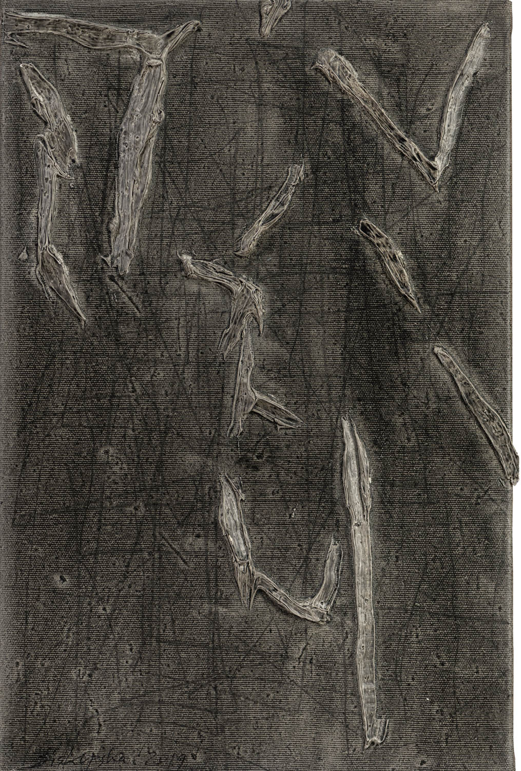 Obraz abstrakcyjny, szary, z fakturalnymi liniami