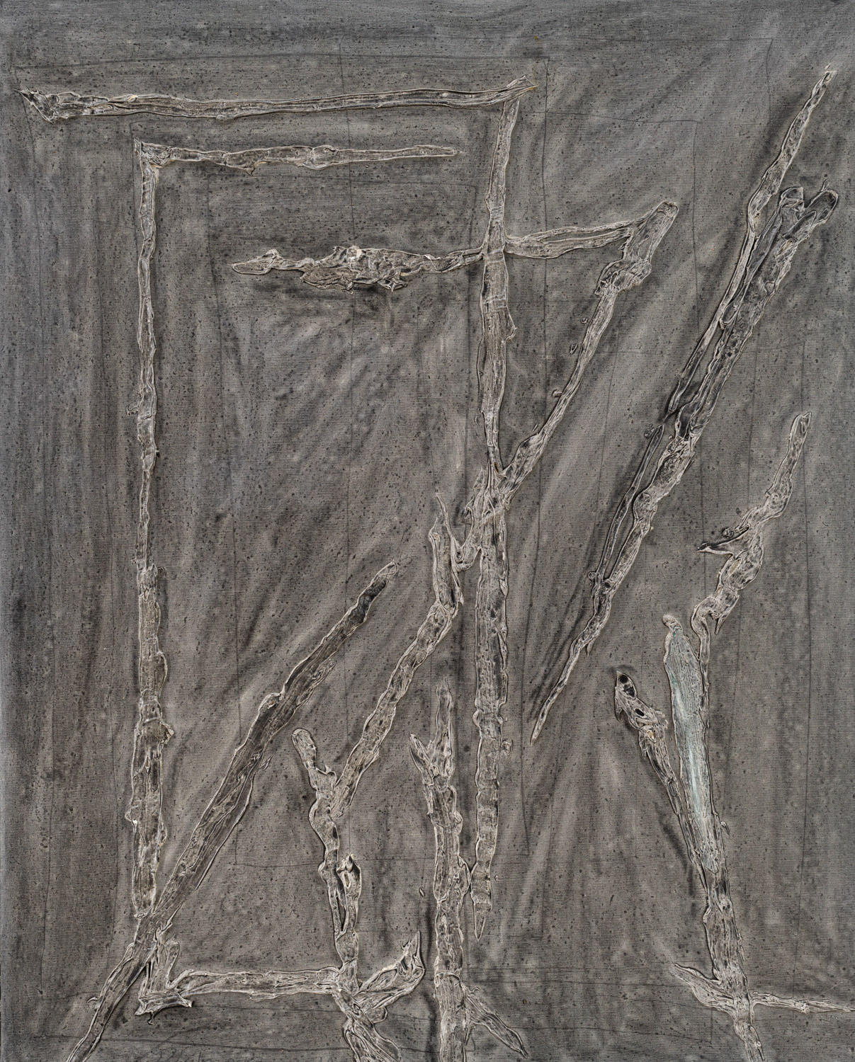 Obraz abstrakcyjny, szary, z fakturalnymi liniami