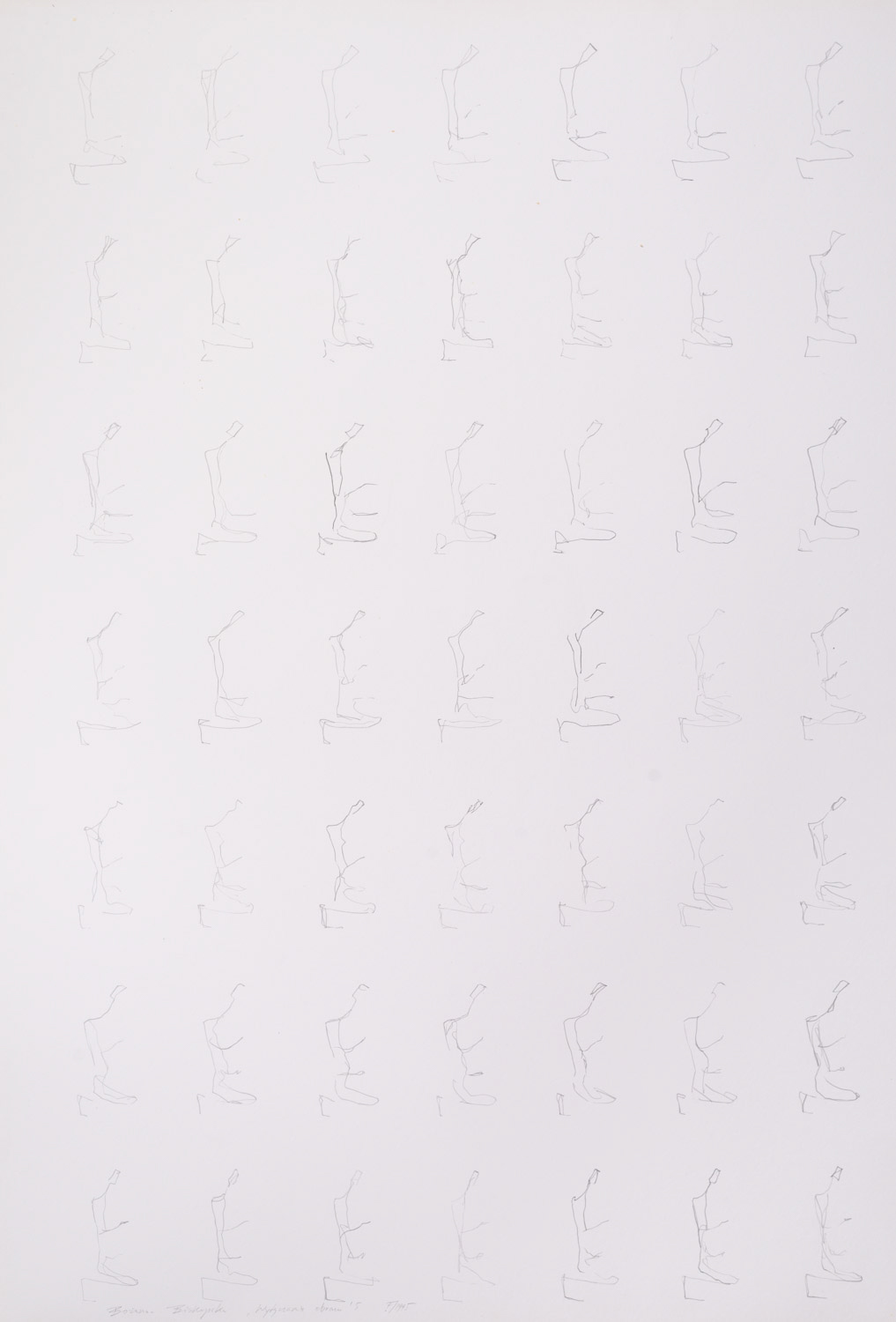 Papier z zmultiplikowanymi rysunkiem klęczącej figury pokrytym olejem