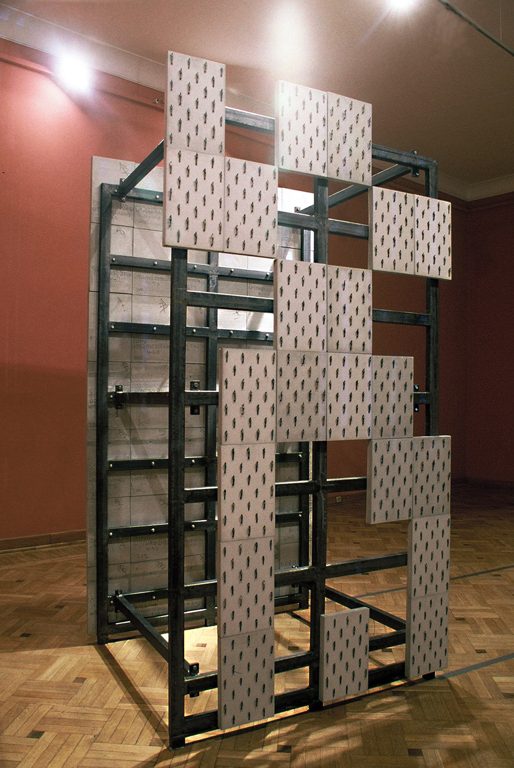Muzeum Rzeźby im. X. Dunikowskiego. Królikarnia, Warszawa, 2002 rok. Wystawa Bożenny Biskupskiej: Prace z lat 1982-2002. Na zdjęciu monumentalna rzeźba z systemu Wytyczania obrazu 01. fot. Zygmunt Rytka [abb_0729]