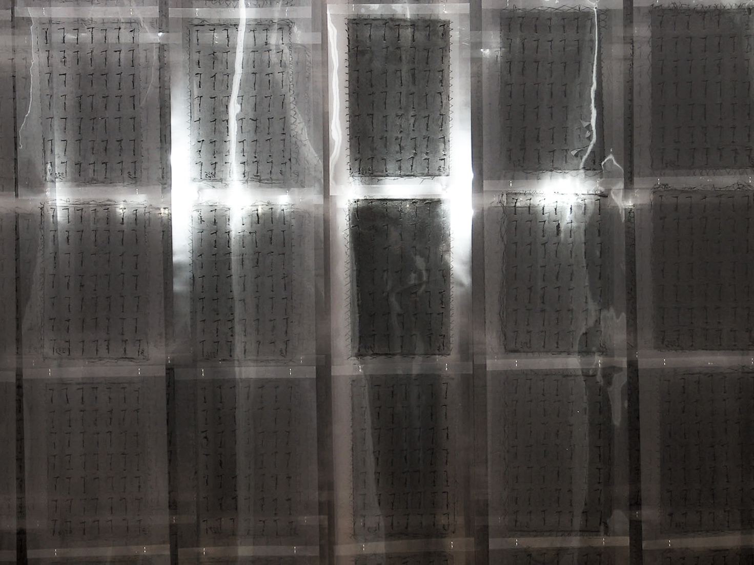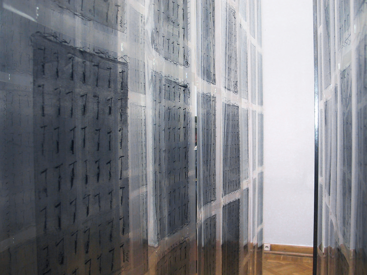 Muzeum Rzeźby im. X. Dunikowskiego. Królikarnia, Warszawa, 2002 rok. Wystawa Bożenny Biskupskiej: Prace z lat 1982-2002. Instalacja na foliach - Upakowanie. fot. Zygmunt Rytka [abb_0735]