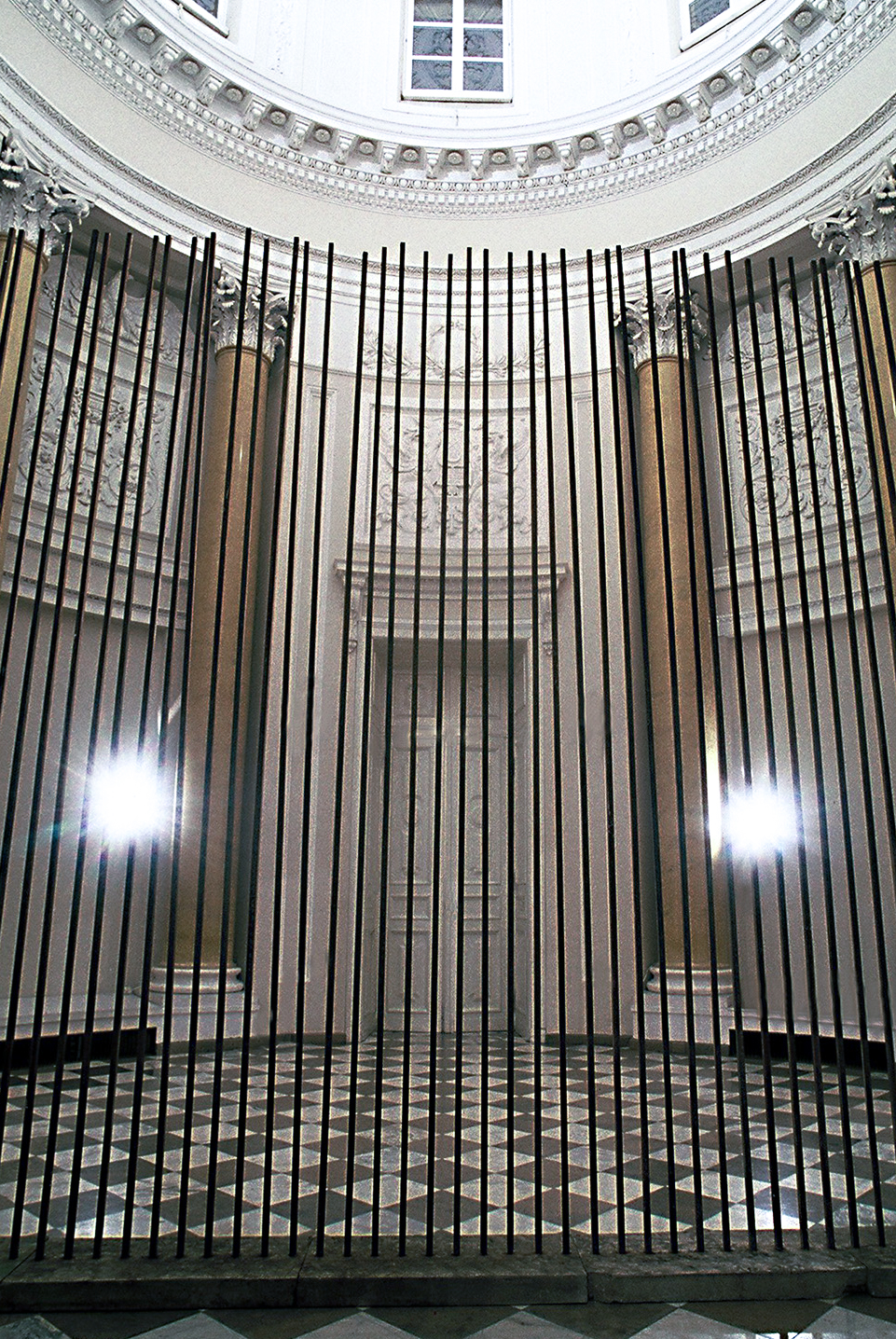 Muzeum Rzeźby im. X. Dunikowskiego. Królikarnia, Warszawa, 2002 rok. Wystawa Bożenny Biskupskiej: Prace z lat 1982-2002. Na zdjęciu monumentalna rzeźba z systemu Wytyczania obrazu 01. fot. Zygmunt Rytka [abb_0731]
