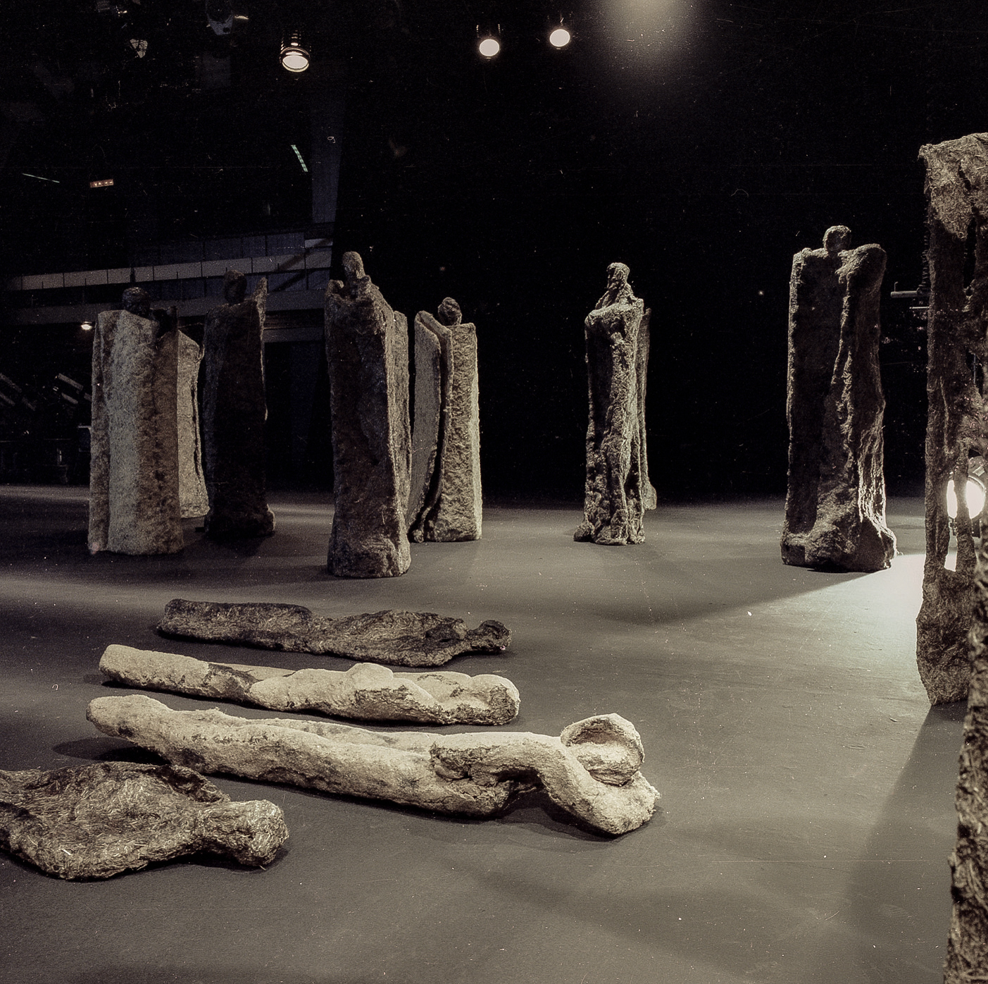 Rzeźby z 41 Biennale w Wenecji w studio telewizyjnym, 1984 rok.