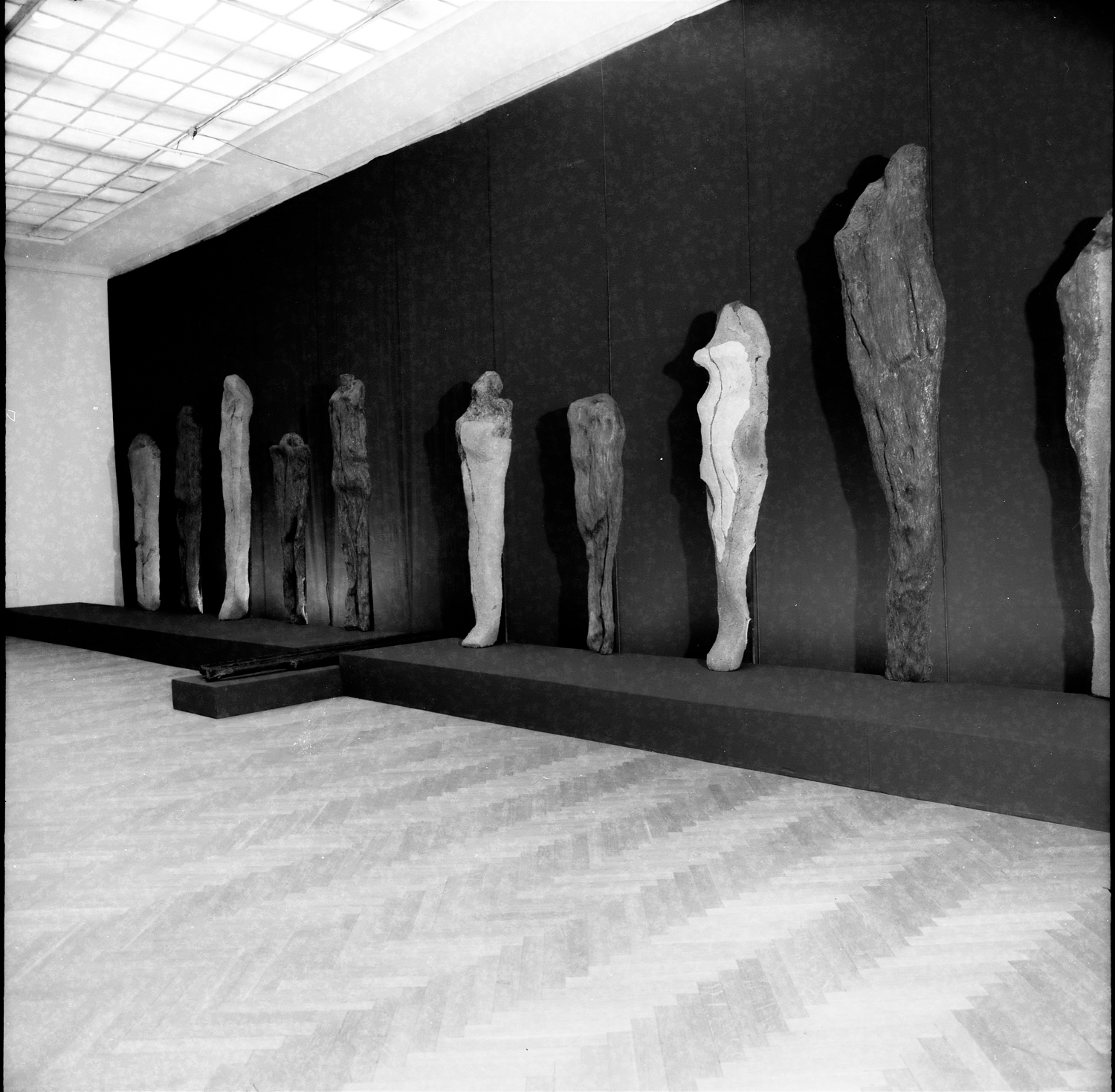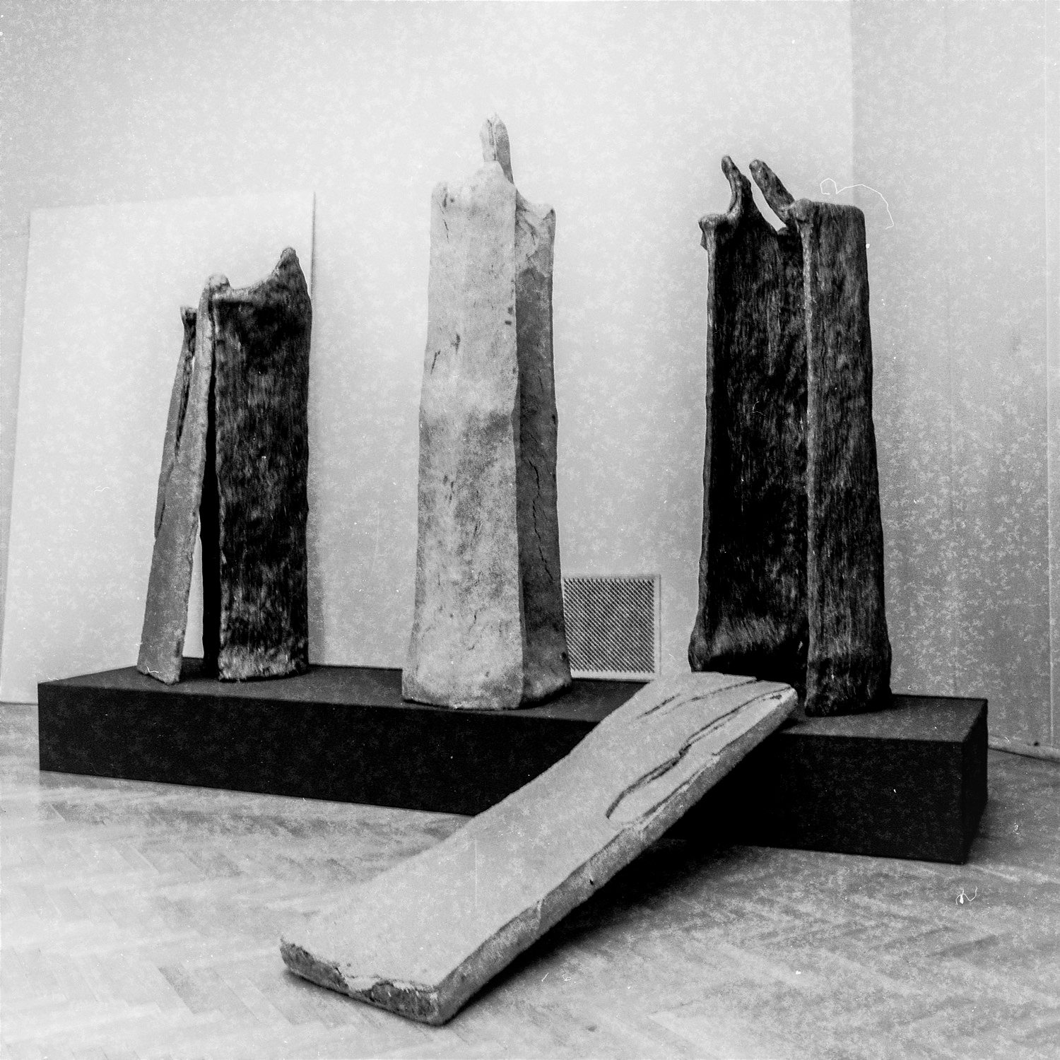 Wystawa Bożenny Biskupskiej -Misterium Czasu, Narodowa Galeria Sztuki - Zachęta, Warszawa, 1986 rok. Rzeźby z cyklu Misterium Czasu.