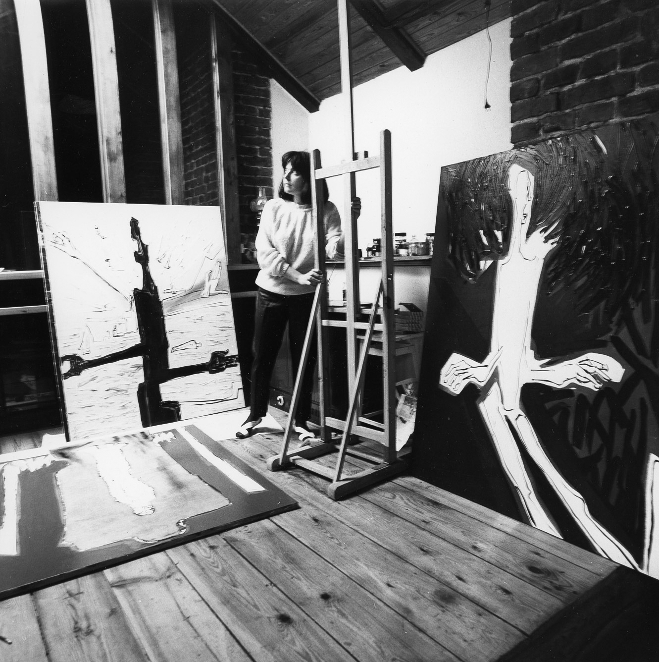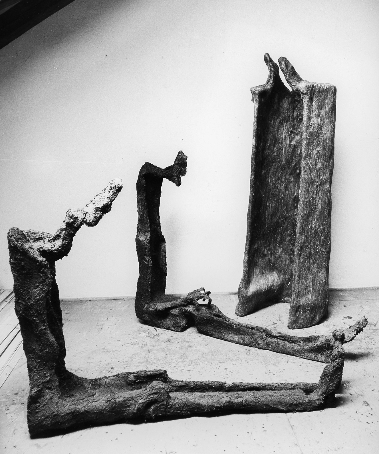 Rzeźby Chwytający powietrze i W drodze w pracowni artystki przy ulicy Lwowskiej w Warszawie, lata 1987-1988.