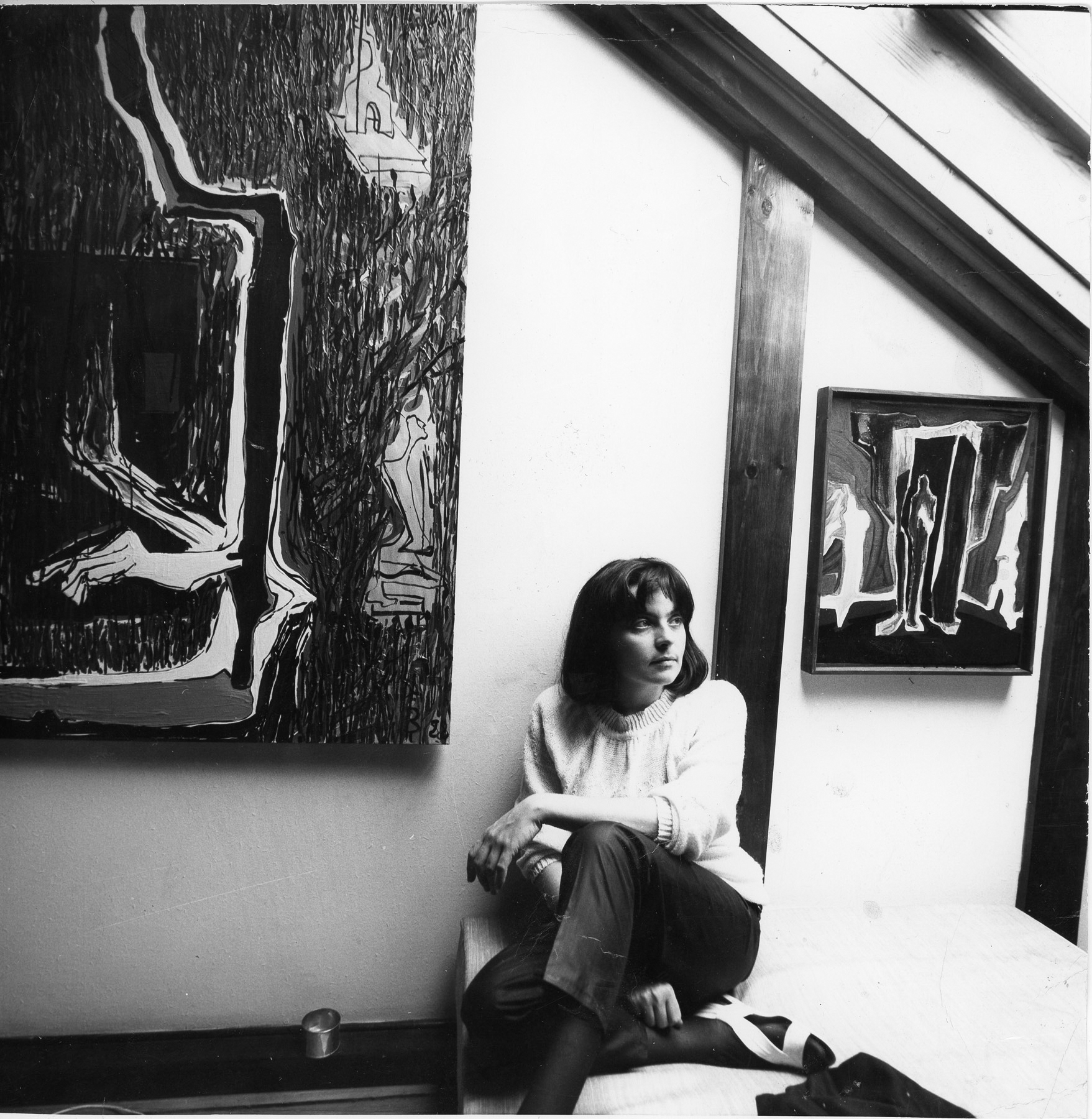 Portrety Bożenny Biskupskiej w pracowni przy ulicy Lwowskiej w Warszawie, lata 80 XX wieku.