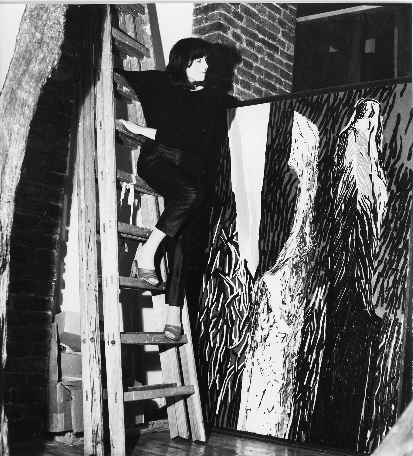Rzeźba Chwytający powietrze w pracowni artystki przy ulicy Lwowskiej w Warszawie, lata 1987-1988.